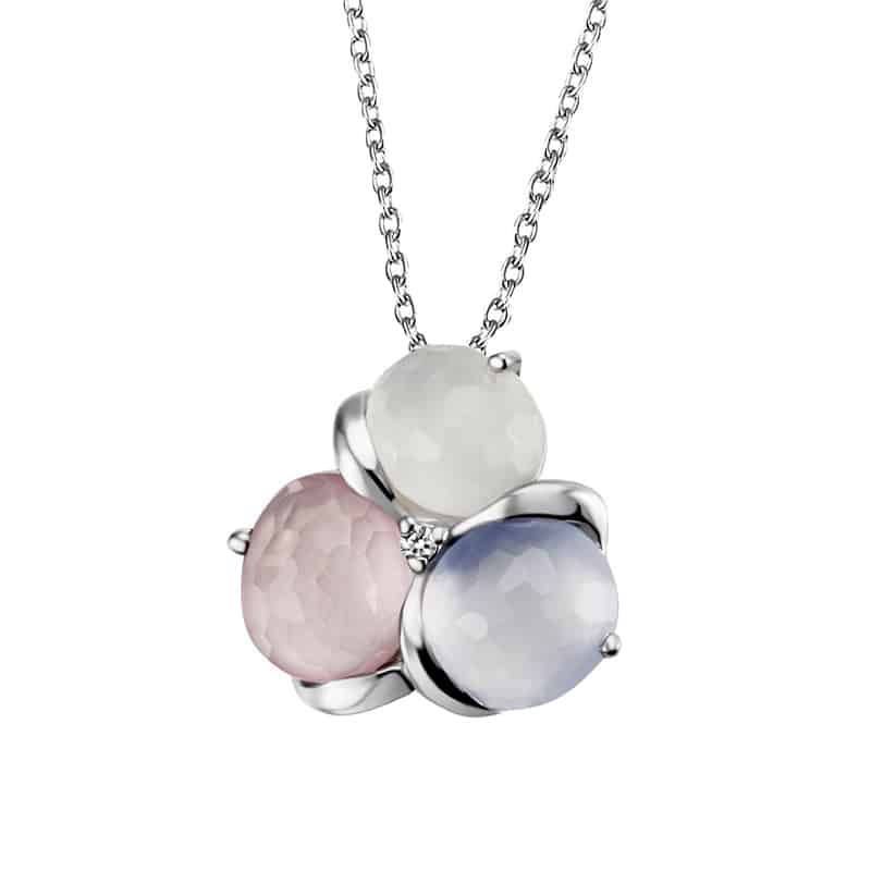 Verspieltes Collier von Diamantor mit drei Steinen in wunderschönen Pastell Tönen. Ein absoluter Hingucker!